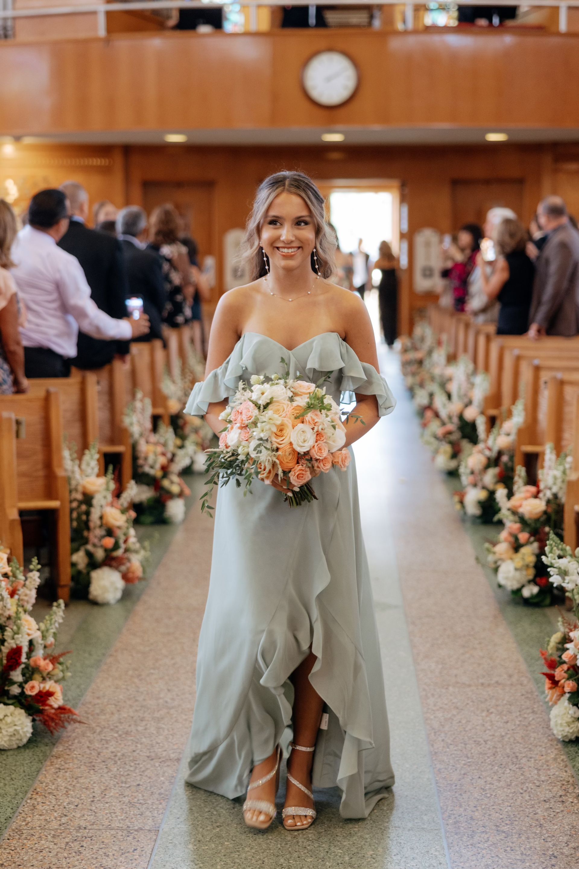 Bridesmaid dress alterations ensure each gown fits flawlessly, enhancing both comfort and confidence. Common adjustments include taking in or letting out seams for a tailored fit, hemming for the perfect length, and adjusting straps or sleeves for secure support. We also refine bodices, reshape necklines, and add built-in cups when needed. Whether it’s soft chiffon, structured satin, or intricate lace, each dress is carefully tailored to complement the wearer's unique shape while preserving the gown’s original beauty and elegance.